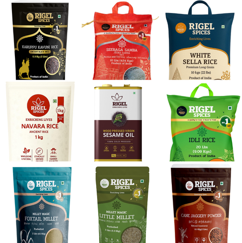Discover a wide range of natural, wholesome, and nutrient-rich food products crafted for a healthier lifestyle. From premium rice varieties and traditional millets to cold-pressed oils, spices, and jaggery, every product is carefully sourced to preserve purity, taste, and nutrition.